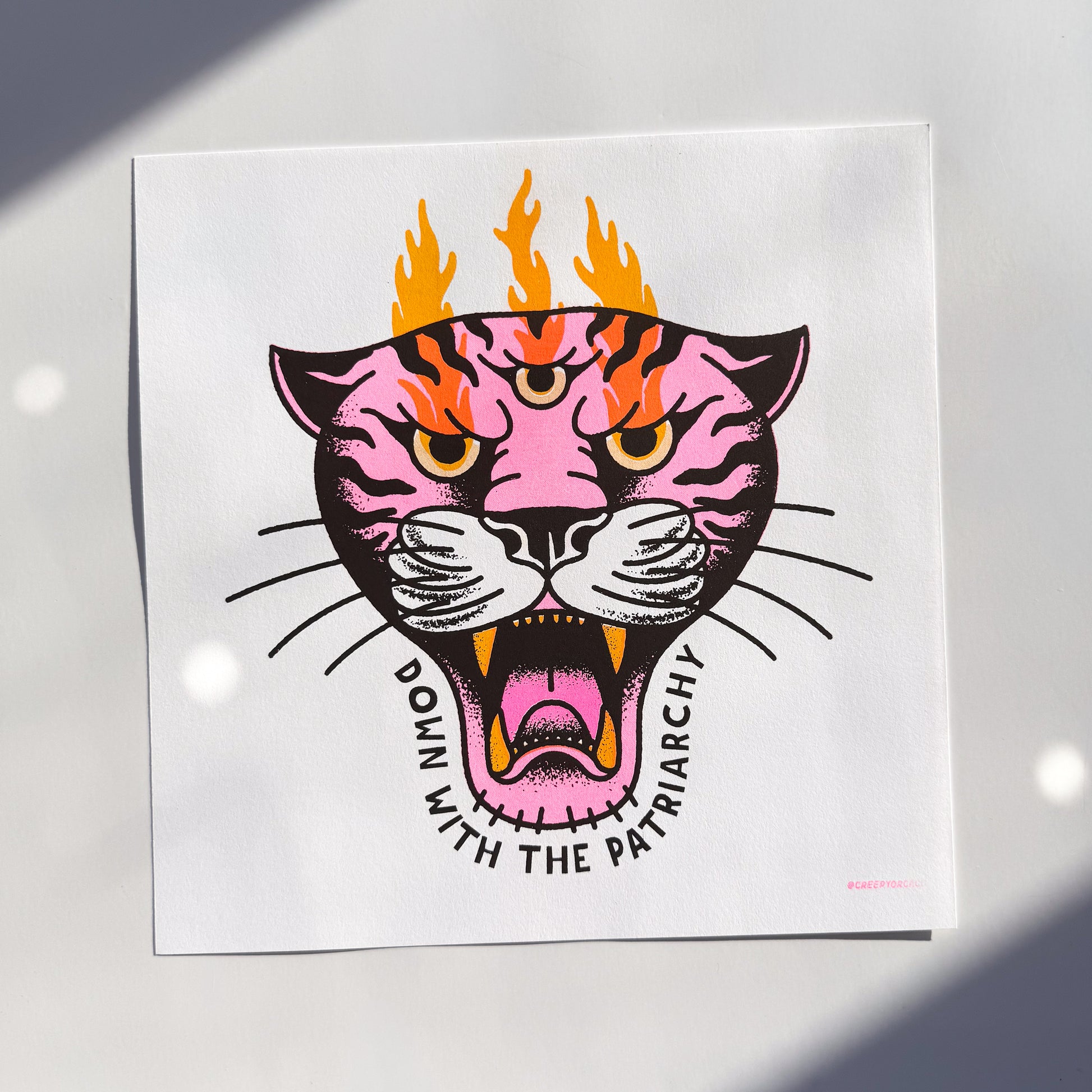 Inspired by the bold lines of American traditional tattoos and fueled by a deep-seated exhaustion with systemic nonsense, the Patriarchy Tiger is here to scream along with you. This isn't just a print; it’s a visual manifestation of feminist fire, designed for those who prefer their home decor with a side of righteous indignation.